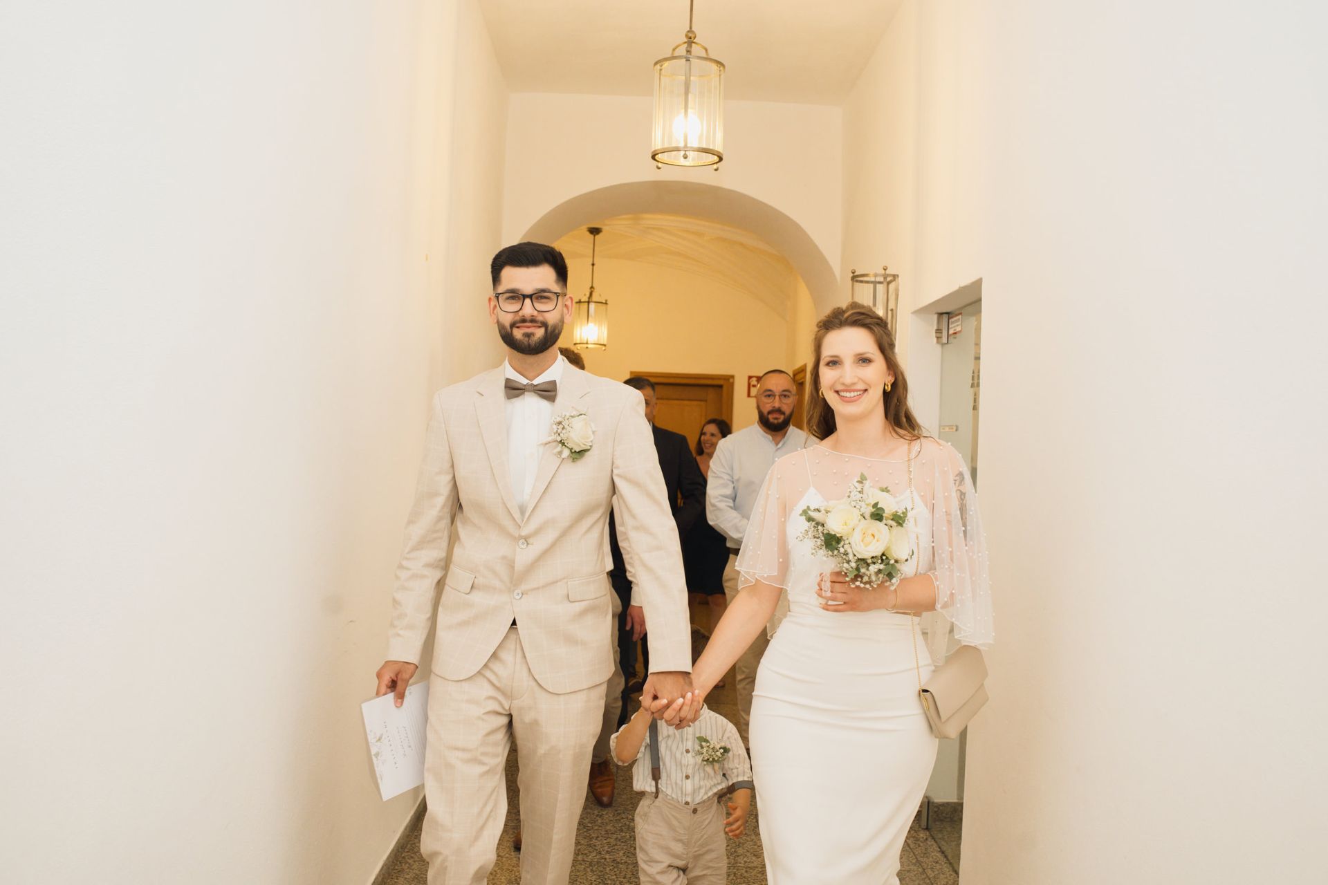 Am Standesamt war einiges los: Vor uns heirateten bereits die Polizei und die Feuerwehr, was den Zugang etwas verzögerte – aber mit einem Lächeln und etwas Geduld haben wir uns problemlos durchgekämpft. 😄